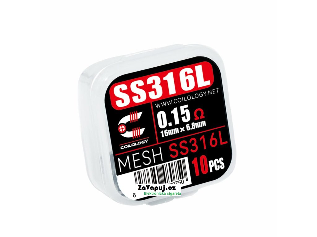 Coilology Mesh SS316L je vysoce kvalitní mesh pletivo renomovaného výrobce na poli DIY vapingu Coilology. V provedení SS316L najdete tradiční typ mesh pletiva z nerezové oceli SS316L. Díky své konstrukci nabídne perfektně rychlý náběh žhavení, dlouhou životnost a perfektní výsledky při vapování. Odpor jednoho plátku mesh pletiva se pohybuje okolo 0.15 ohm. Pletivo je možné užívat se standardním režimem výkonu nebo výstupního napětí. Díky materiálu z nerezové oceli SS316L umožňuje využívání také v teplotním TC režimu pro nerezovou ocel typu SS316L.