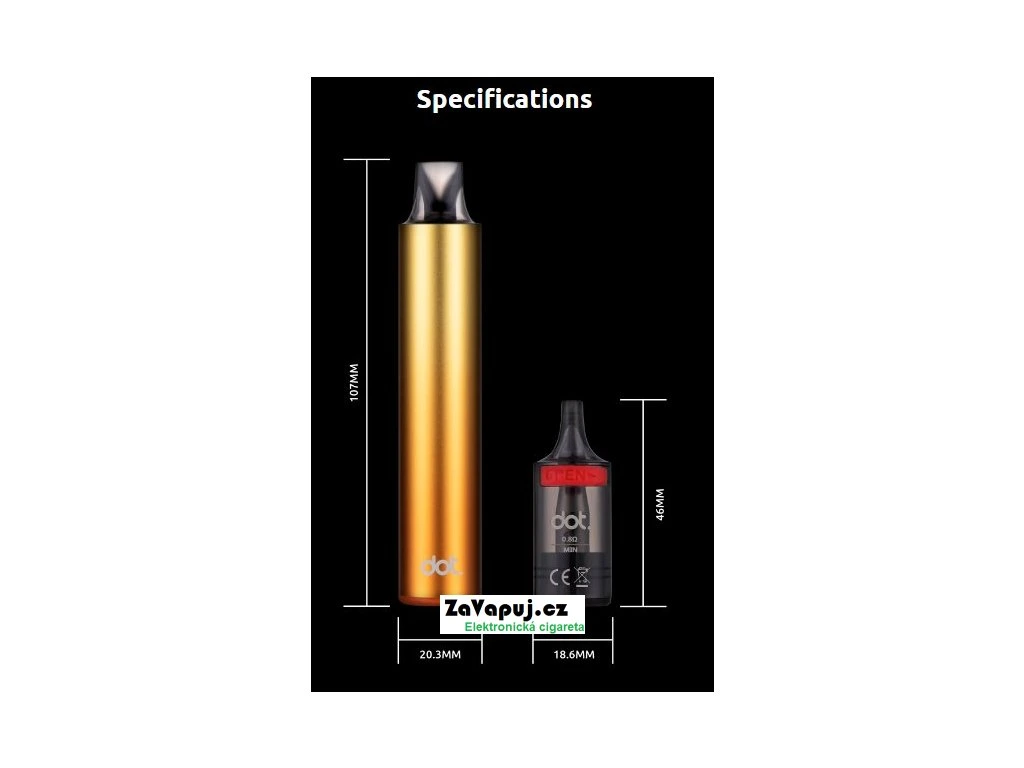 Elektronická cigareta DotMod Switch R je ideální vapovací zařízení ve stylu pera pro začátečníky, kteří hledají jednoduchost bez kompromisů v kvalitě vapingu. Tělo baterie je vyrobeno z kvalitního hliníku a disponuje vestavěným monočlánkem o kapacitě 1000mAh s rychlonabíjením typu USB-C a automatickým výkonem až 25W. Vyměnitelná cartridge (POD) je vybavena žhavící hlavou o odporu 0,8ohm s objemem nádržky 3ml. Díky magnetickému propojení s baterií lze cartridge jednoduše vyjmout a doplnit oblíbeným liquidem. Regulace přívodu vzduchu pro nastavení optimální kouřivosti se nachází ve spodní části těla baterie.