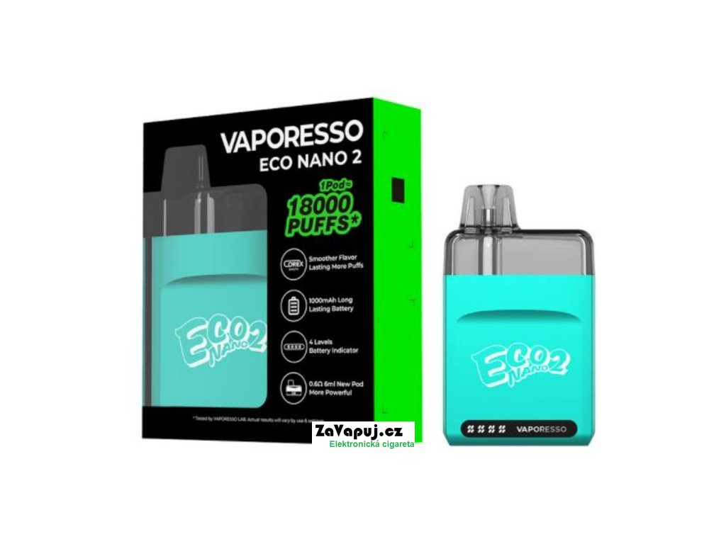 Vaporesso představuje druhé vydání kapesního Vape zařízení ECO Nano 2. Pod stylovým pláštěm baterie se nachází integrovaný monočlánek o kapacitě 1000mAh s rychlým USB-C (1A) nabíjením, AXON čip pro intenzivní vapování a LED displej zobrazující stav nabití baterie. Tvorbu páry zajišťuje systém automatického žhavení - stačí pouze potáhnout z náustku. ECO Nano 2 je vybaveno cartridgí o objemu 6ml s vestavěnou žhavicí hlavou Mesh o odporu 0,6ohm a technologií COREX = rychlejší a vyváženější odpařování liquidu.