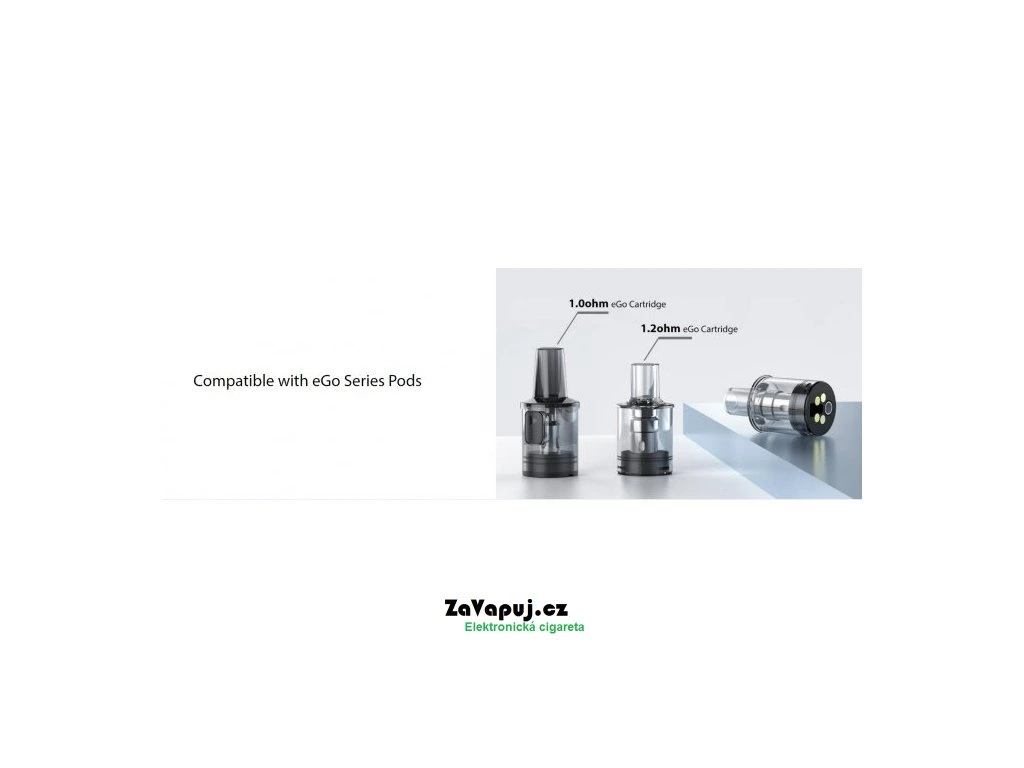 Se zbrusu novým designem, moderním nabíjecím systémem USB-C a inovativní mesh spirálkou je eGo Pod ideální volbou pro začínajícího i pokročilého vapera. Elegantní a kompaktní tělo baterie obsahuje vestavěný monočlánek o kapacitě 1000mAh s automatickým spínačem a konstantním napětím 3,7V. Vyměnitelná cartridge (POD) se žhavící hlavou o odporu 1ohm pojme až 2ml liquidu. Tato inovace je vhodná pro kouření ve stylu MTL, tedy klasického šlukování pusa-plíce.