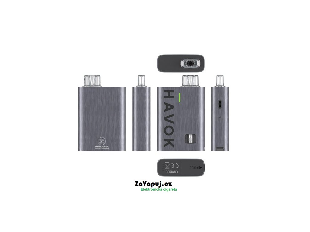 Není určeno pro náplně obsahující nikotin! Elektronická cigareta Uwell Havok R se vyznačuje svým neotřelým designem a hlavně inovativní instalací cartridge, která se vkládá zespodu těla baterie = zamezení protečení liquidu. Vestavěný monočlánek o kapacitě 950mAh s automickým výkonem až 22W, LED indikátor stavu nabití a USB-C port pro rychlé nabití. Cartridge Havok R o objemu 3ml disponuje integrovanou žhavicí cívkou o odporu 0,6ohm.