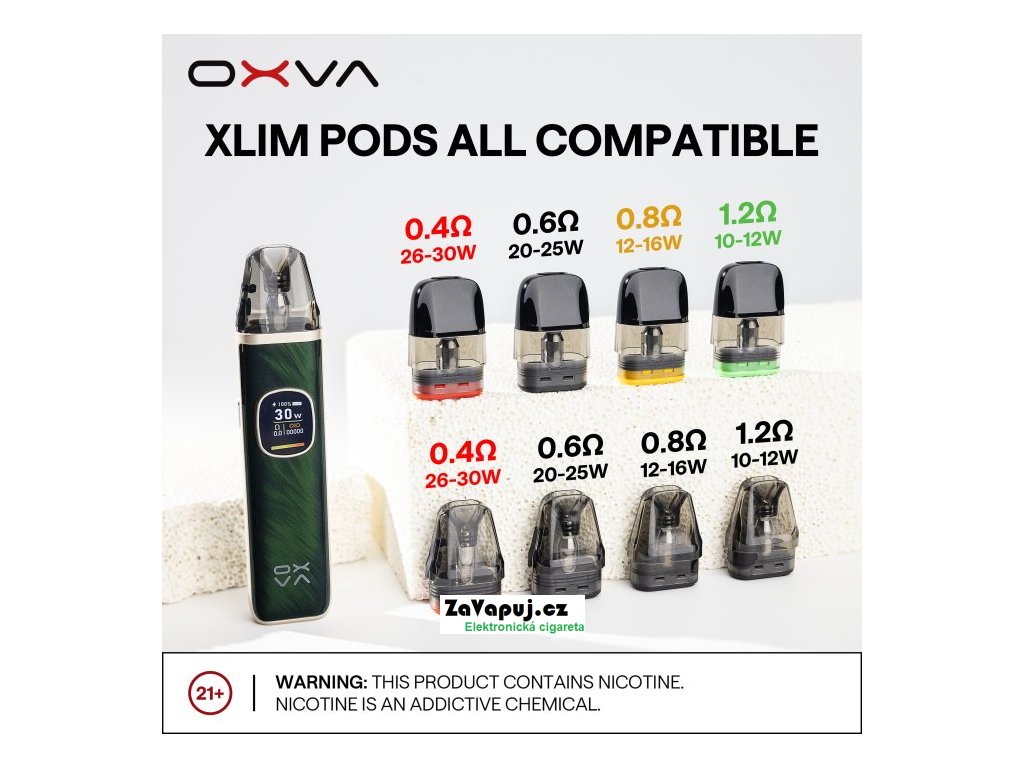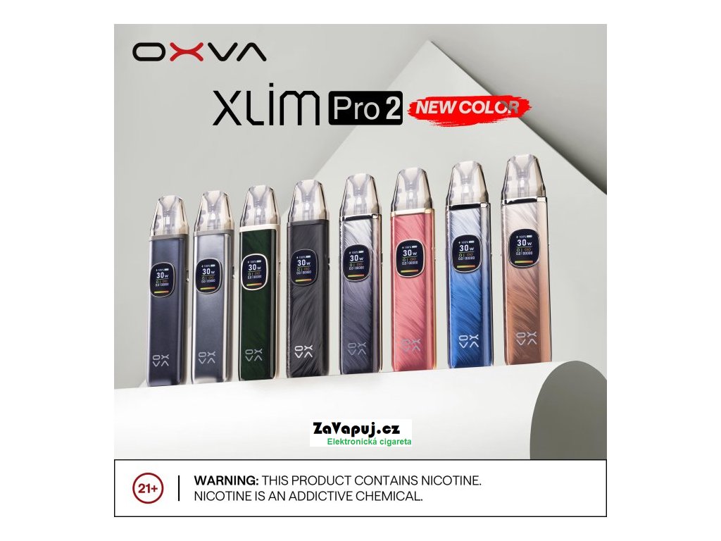 Elektronická cigareta OXVA Xlim Pro byla vyhlášena nejoblíbenějším POD zařízením mezi vapery za období 2023 a 2024. Nyní přichází výrobce s druhou řadou, která si pro Vás přichystala mnoho novinek. Elegantní a čistý designe těla baterie zdobí 0,56 palcový barevný Ultra-HD displej, který poskytuje vynikající přehled o nastavení všech hodnot. Vestavěný monočlánek nabízí vyšší kapacitu baterie 1300mAh, USB-C port s 2A nabíjením a výkonem až 30W. Na boční straně baterie je umístěno regulační tlačítko pro přívod vzduchu, díky kterému si jednoduše nastavíte RDL nebo MTL režim vapování. V obsahu balení najdete cartridge Xlim V3 s horním plněním - není potřeba vyndavat cartridge z těla baterie při plnění liquidem. Cartridge V3 jsou plně kompatibilní s verzí V2.