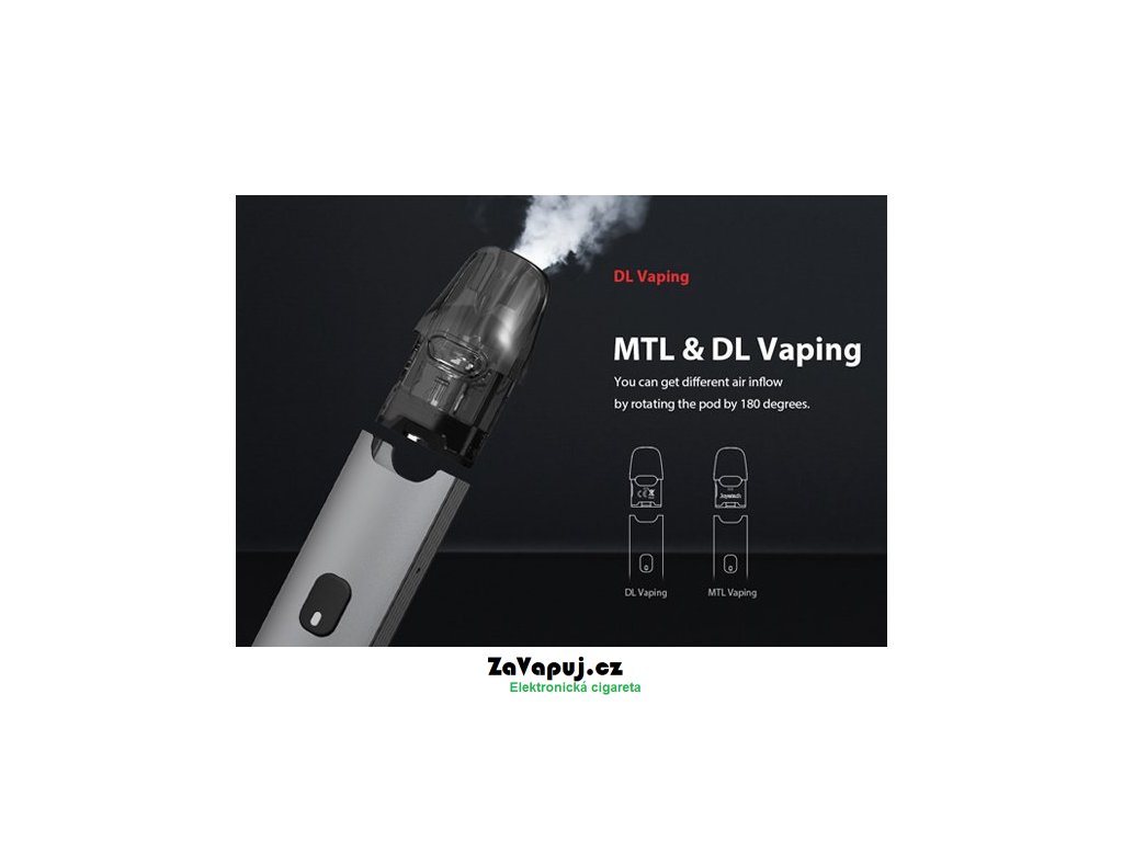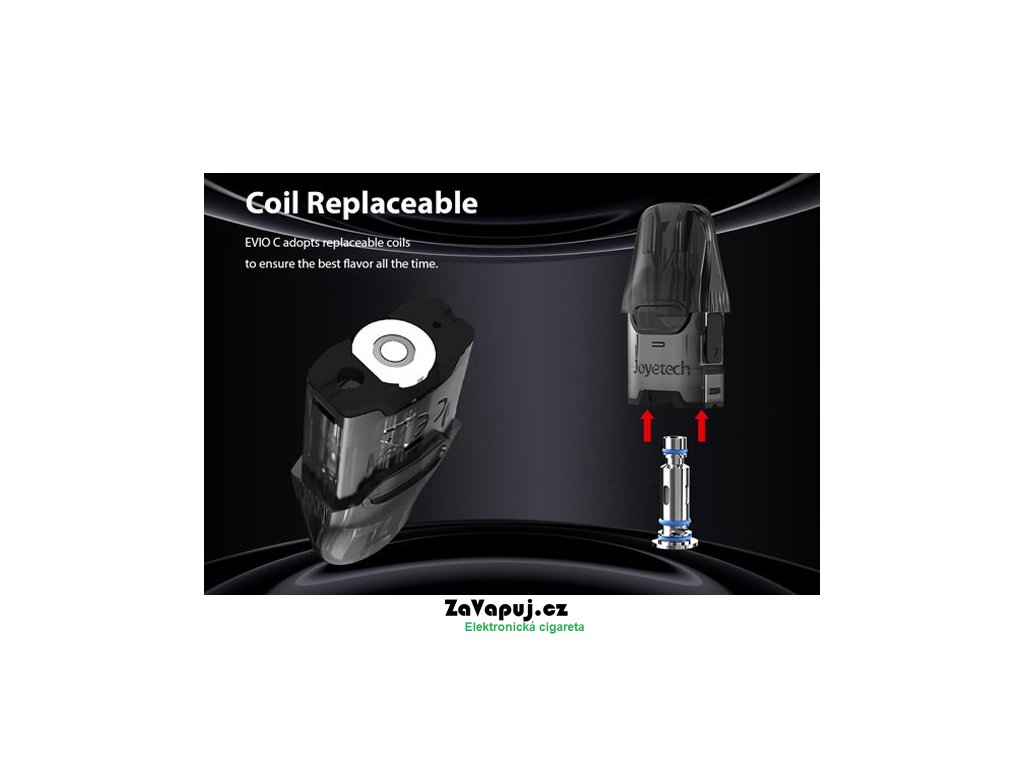 Joyetech EVIO C Pod je ultimátní elektronická cigareta s POD systémem a bezprecedentním tělem z austenitické nerezové oceli. Vestavěná baterie o kapacitě 800mAh disponuje LED indikátorem stavu nabití a USB-C portem pro rychlé nabíjení za pouhých 30min. Cartridge (POD) s pohodlným bočním plněním o objemu 2ml obsahuje vyměnitelné atomizery EN Mesh o odporu 0,8ohm (plně kompatibilní se žhavícími hlavami Uwell Caliburn G). Přívod vzduchu se nachází na boku těla baterie a dle Vašeho požadavku si můžete zvoli mezi DL a MTL stylem vapování - závisí na způsobu vložení cartridge (viz obrázek).