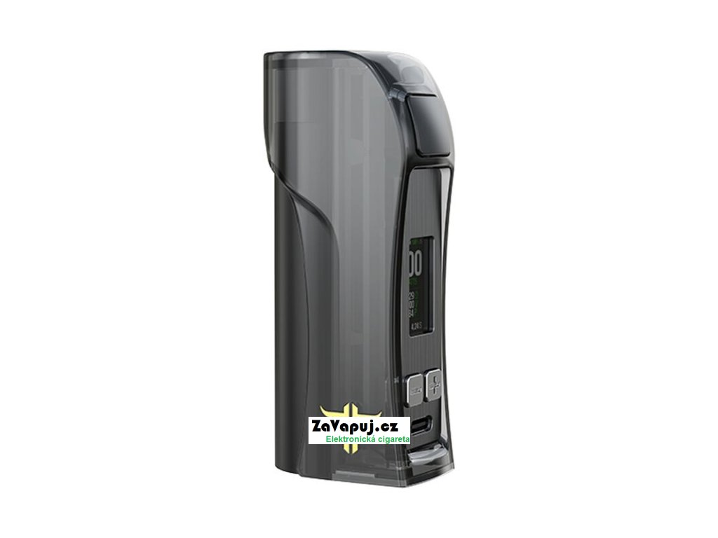 Ve spodní části modu se nachází uzávěr pro slot baterie, mod pracuje s jednou baterií typu 21700, lze však používat také standardní baterie 18650 díky přiloženému adaptéru. Díky pohonu na baterii 21700 můžete mod osadit vysokokapacitním článkem pro potřeby DL, nebo MTL potahu a pro dlouhou výdrž celého modu. Baterii budete moci pohodlně dobíjet přímo v modu díky rozhraní USB-C.