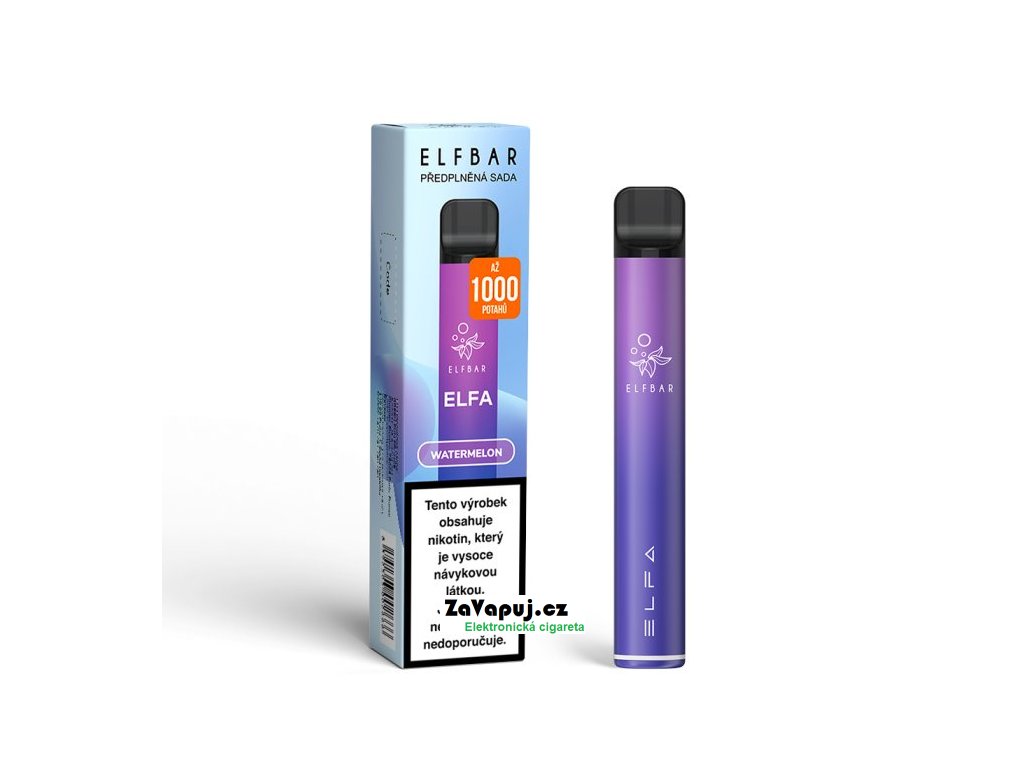 Osvěžující a lahodná chuť vodního melounu... Elf Bar představuje elektronickou cigaretu ELFA, moderní hybridní zařízení pro vaping. Po triumfální jízdě jednorázové cigarety Elf Bar 600 přichází výrobce s ekologičtější a úspornější variantou ELFA, jejímž základem je dobíjecí baterie o kapacitě 500mAh a vyměnitelné předplněné cartridge o objemu 2ml. Nyní už nemusíte po spotřebení liquidu vyhodit celé zařízení, ale stačí pouze vyměnit předplněnou cartridge s liquidem dle vlastního výběru. Tyto cartridge obsahují prvotřídní liquid s nikotinovou solí, díky které dochází k rychlejší a kvalitnější vstřebatelnosti = bez dráždivého pocitu v krku oproti klasickým liquidům. Nedílnou součástí cartridge je spirálka Mesh pro rychlejší žhavení, rovnoměrné odpařování, vynikající chuť liquidu a větší tvorbu páry. Poměr 50VG/50PG