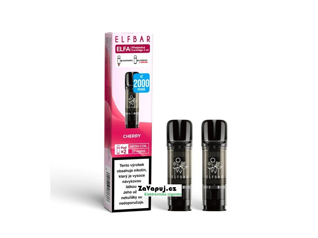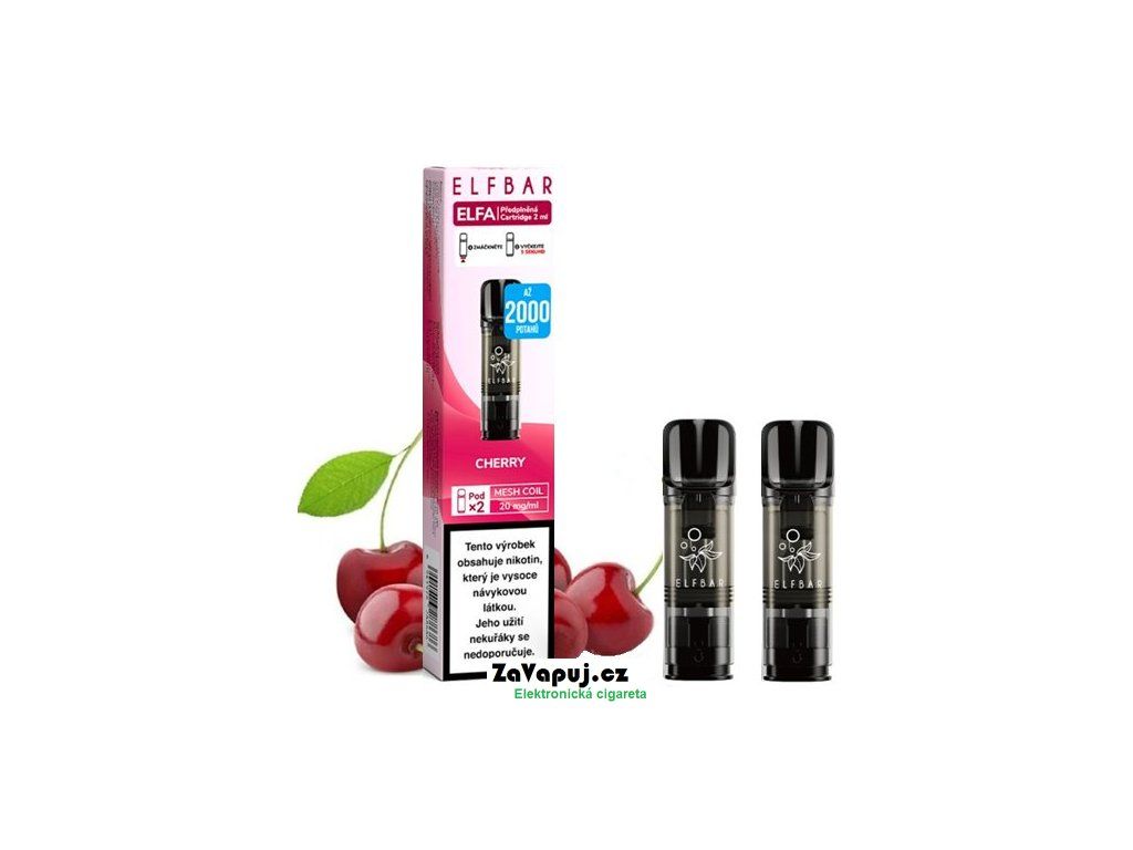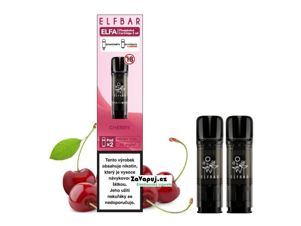 Tradiční třešňová příchuť... Předplněné cartridge Elf Bar ELFA obsahují 2ml liquidu o síle nikotinu 20mg. Cartridge obsahují prvotřídní liquid s nikotinovou solí, díky které dochází k rychlejší a kvalitnější vstřebatelnosti = bez dráždivého pocitu v krku oproti klasickým liquidům. Nedílnou součástí cartridge je spirálka Mesh pro rychlejší žhavení, rovnoměrné odpařování, vynikající chuť liquidu a větší tvorbu páry. Poměr 50VG/50PG