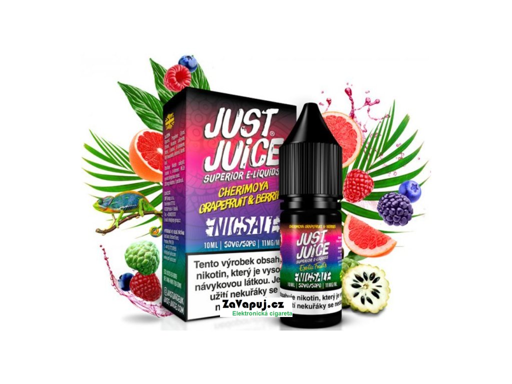 Svěží grapefruit, exotické cherimoyi a bobulovitý mix plný jahod, malin, borůvek... Britský výrobce liquidů Just Juice představuje liquidy SALT, které se od běžných liquidů odlišují tím, že mají nižší PH a obsahují nikotinovou sůl, díky které dochází k rychlejší a kvalitnější vstřebatelnosti = bez dráždivého pocitu v krku oproti klasickým liquidům. Poměr 50VG/50PG
