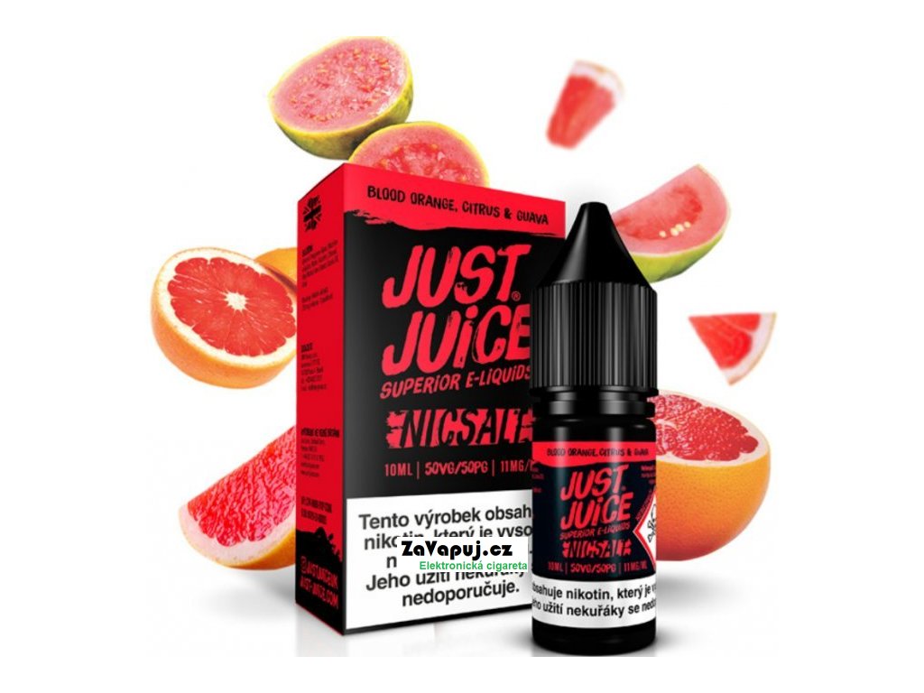 Autentická chuť zralého červeného pomeranče, nakyslých citrusových plodů a tropické guavy... Britský výrobce liquidů Just Juice představuje liquidy SALT, které se od běžných liquidů odlišují tím, že mají nižší PH a obsahují nikotinovou sůl, díky které dochází k rychlejší a kvalitnější vstřebatelnosti = bez dráždivého pocitu v krku oproti klasickým liquidům. Poměr 50VG/50PG