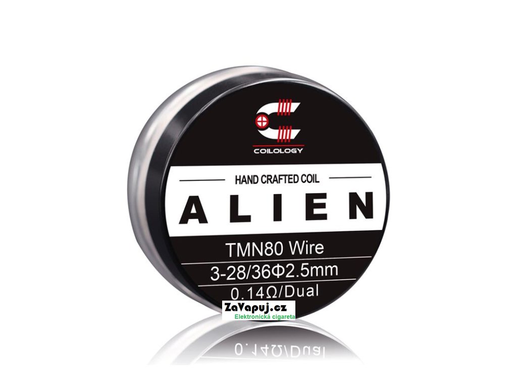 Předmotané spirálky Coilology Twisted Messes Alien Ni80 disponují odporem 0,14 ohm. Jsou vyrobeny z nichromu. Jsou tvořeny třemi odporovými dráty s průměry 0,3 mm (28GA) v jádru, které jsou omotané tenkým nichromovým drátem s průměrem 0,13 mm (36GA). Jsou určené pro DL DIY atomizéry.