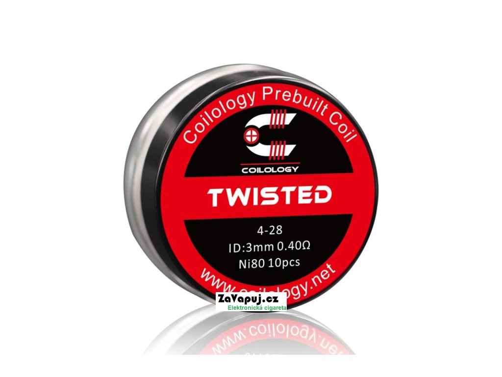 Předmotané spirálky Coilology Twisted Ni80 disponují odporem 0,4 ohm. Jsou vyrobeny z nichromu. Jsou tvořeny čtyřmi odporovými dráty smotanými do sebe. Průměry těchto drátů činí 0,3 mm (28GA). Twisted spirálky nabídnou rychlý náběh žhavení a vynikající kouřivost. Jsou určené pro DL DIY atomizéry.
