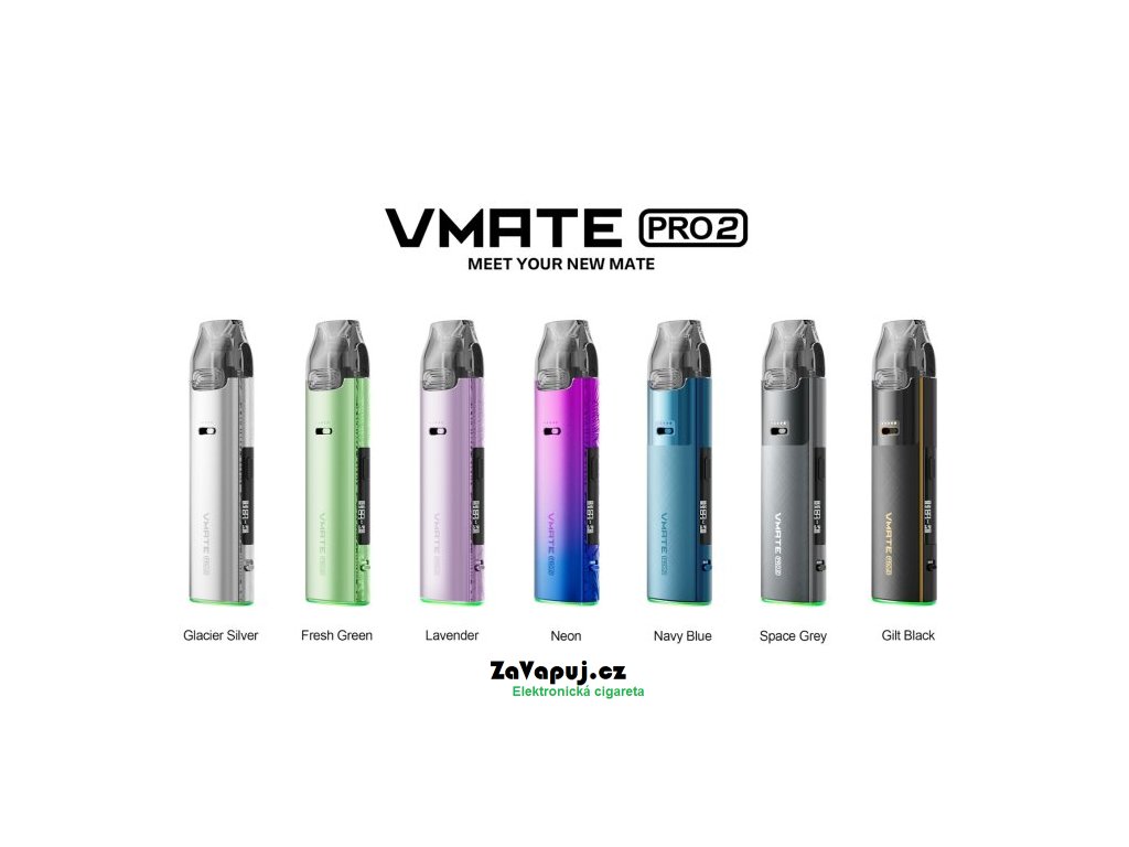 Prémiové zpracování zahrnuje CNC obráběný rám s matnou povrchovou úpravou, 3D laserové detaily a stylové cirkulární LED podsvícení. Vmate Pro 2 podporuje rychlé nabíjení přes USB-C, přičemž plné dobití zvládne za pouhých 40 minut. Kromě toho nabízí přehledné zobrazení stavu baterie, odporu, výkonu, počtu potahů a délky vapování. Kompatibilita s cartridgemi Vmate 0.4Ω a 0.7Ω zaručuje univerzální použití. K dispozici je v 7 moderních barevných variantách.