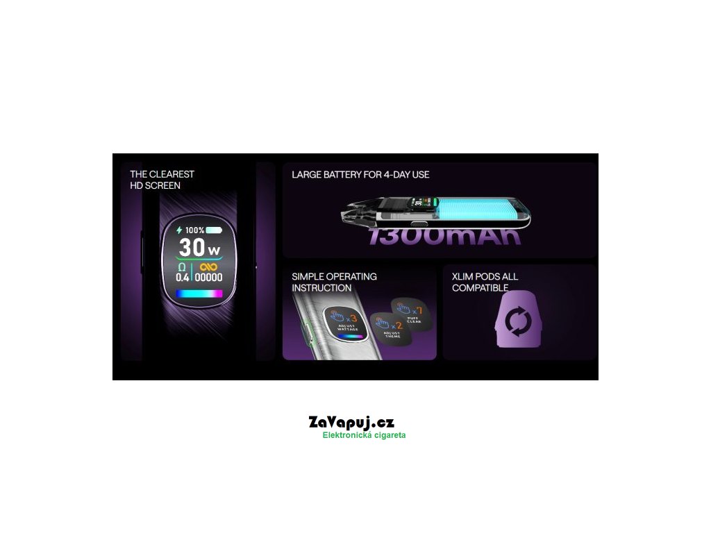 Elektronická cigareta OXVA Xlim Pro byla vyhlášena nejoblíbenějším POD zařízením mezi vapery za období 2023 a 2024. Nyní přichází výrobce s druhou řadou, která si pro Vás přichystala mnoho novinek. Elegantní a čistý designe těla baterie zdobí 0,56 palcový barevný Ultra-HD displej, který poskytuje vynikající přehled o nastavení všech hodnot. Vestavěný monočlánek nabízí vyšší kapacitu baterie 1300mAh, USB-C port s 2A nabíjením a výkonem až 30W. Na boční straně baterie je umístěno regulační tlačítko pro přívod vzduchu, díky kterému si jednoduše nastavíte RDL nebo MTL režim vapování. V obsahu balení najdete cartridge Xlim s horním plněním - není potřeba vyndavat cartridge z těla baterie při plnění liquidem.