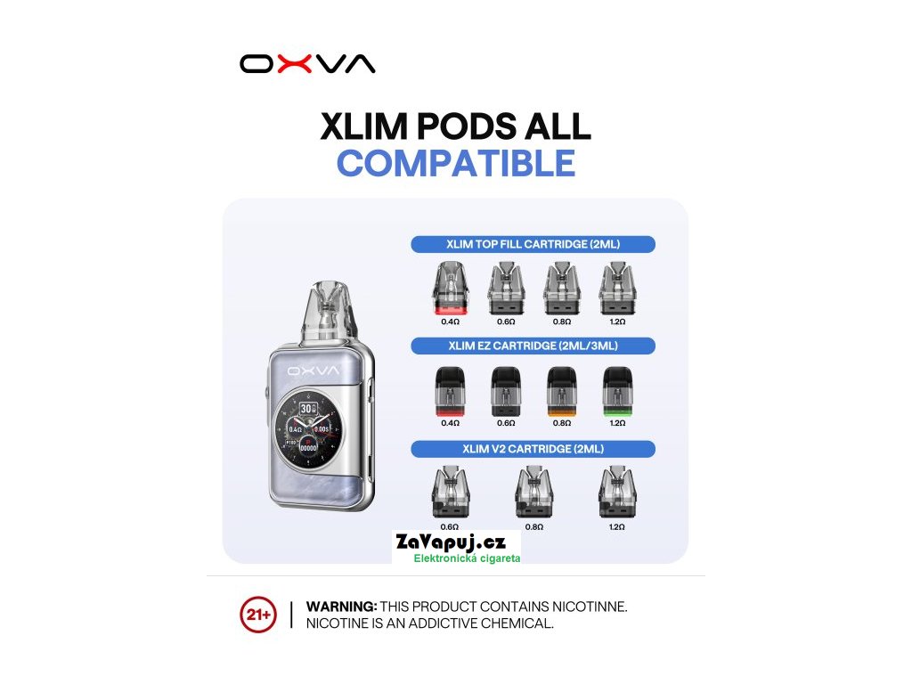 OXVA XLIM SQ PRO 2 představuje špičku mezi moderními pod systémy – elegantní zařízení, které v sobě spojuje technologické inovace a důraz na design. Díky dotykovému 1,09” HD displeji získáváte naprostou kontrolu nad svým vapováním: od přizpůsobení výkonu, sledování počtu potahů až po přístup k užitečným funkcím, jako je kalendář, svítilna nebo animace domovské obrazovky. Srdcem zařízení je výkonná vestavěná baterie o kapacitě 1600 mAh, která v ECO režimu zajistí provoz až na celý týden. Nabíjení probíhá skrze moderní USB-C konektor a plného dobití dosáhnete už za 45 minut. I přes své kompaktní rozměry nabízí XLIM SQ PRO 2 výdrž, která potěší i náročnější uživatele. Zařízení využívá cartridge z řady XLIM V2, V3 (Top Fill) i EZ, což zajišťuje skvělou kompatibilitu a široké možnosti výběru podle preferencí vapera. Díky technologii iCotton a preciznímu airflow systému si můžete být jisti věrnou chutí po celou dobu používání cartridge – až na 30 dní čisté chuti. Design přístroje navíc nezůstává pozadu – tělo je dostupné v několika stylových variantách, od decentních matných povrchů až po poutavé mramorové či lesklé motivy. Kompaktní rozměry, ergonomický tvar a kovový rám z něj dělají nejen výkonné, ale i velmi elegantní zařízení. OXVA XLIM SQ PRO 2 není jen vape. Je to osobní zážitek s dotekem luxusu, který se přizpůsobí vašemu životnímu stylu.